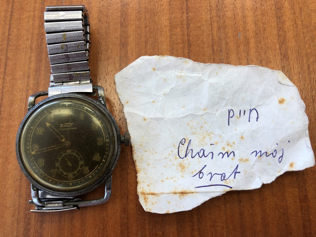 We wrześniu 1939 roku, gdy Niemcy wkroczyli do Kielc, moi rodzice postanowili uciekać na wschód. Zanim wyjechali wujek Chaim zdjął zegarek Tissot i dał go mojemu tacie, prosząc, by zatrzymał go, a odda, gdy się spotkają. Nie spotkali się nigdy więcej. Tata dbał o zegarek przez większość swojego życia. Przez wiele lat ciągle pamiętał o tej cennej pamiątce z Kielc. To było szczególnie ważne dla mojej mamy, ponieważ była to jedyna osobista rzecz, jaka pozostała jej po całej rodzinie. Pamiętam ojca reperującego zegarek wiele razy, szukającego części zamiennych, a czasem robiącego części których nie mógł znaleźć. Nigdy nie zrezygnował z niego, aż do czasu, gdy był zbyt stary, by móc go reperować. Kiedy po śmierci mamy w czasie dni żałoby porządkowałem jej rzeczy i dokumenty, między biżuterią znalazłem w małej nylonowej torebce zegarek Tissot z dołączonym małym kawałkiem papieru, na którym mama napisała po hebrajsku i po polsku „Chaim mój brat”.